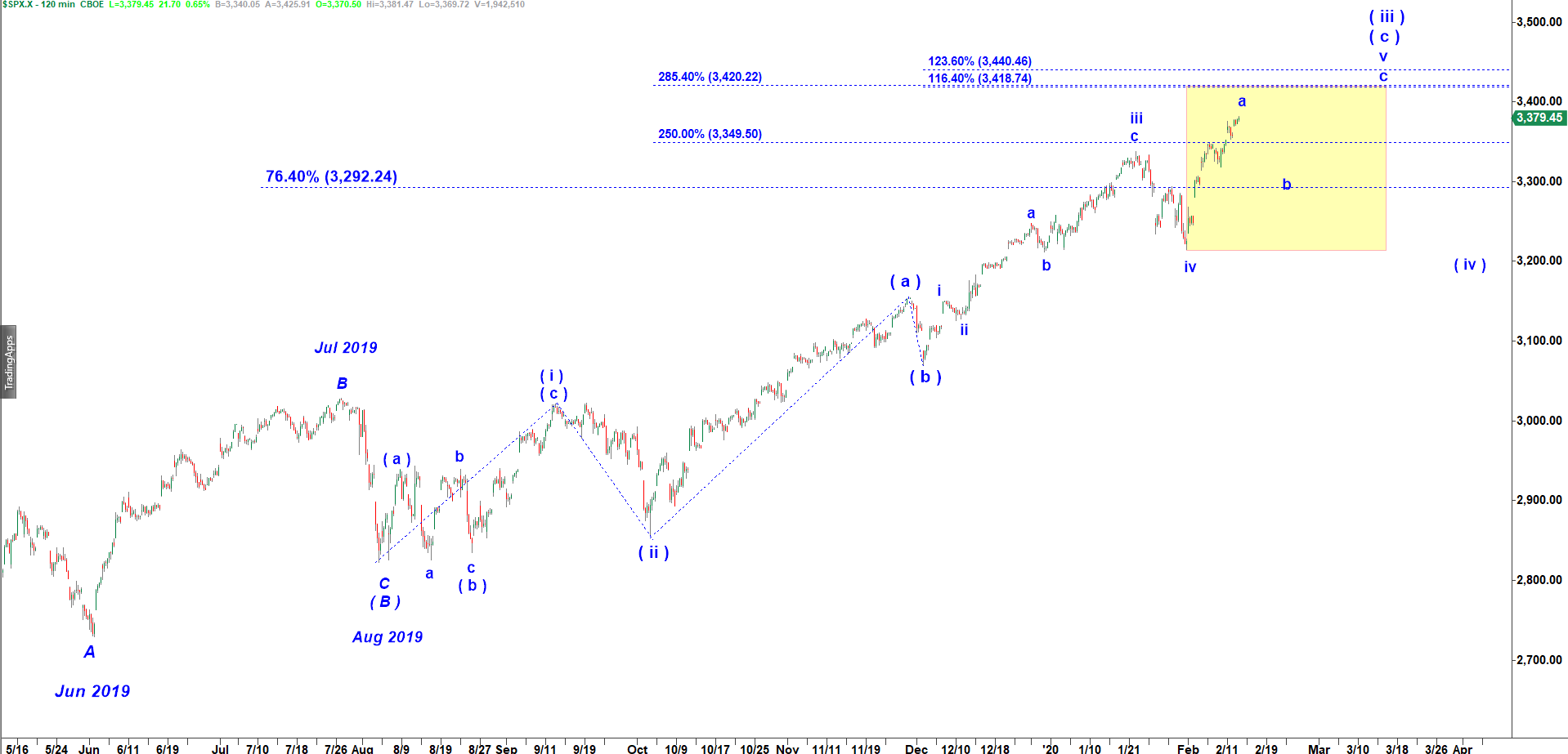Then we should expect the final push higher in wave v up off the low made at 3,214.68 on January 31, 2020.
