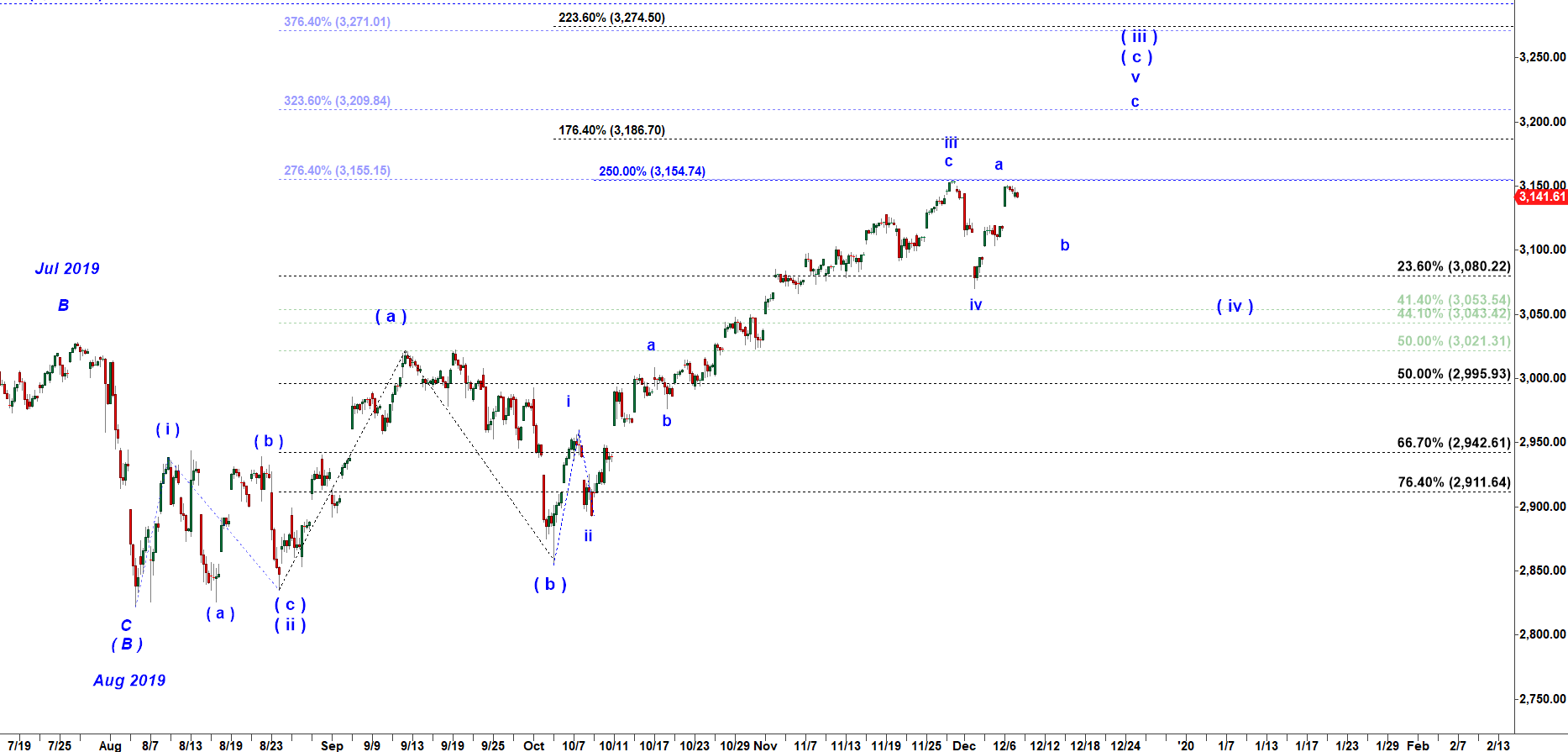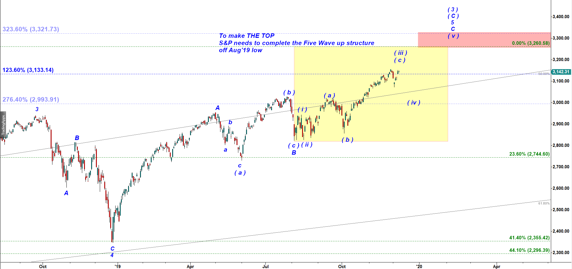 S&P 500 - not clear if micro subwave a of v has topped or needs to make a new all time high