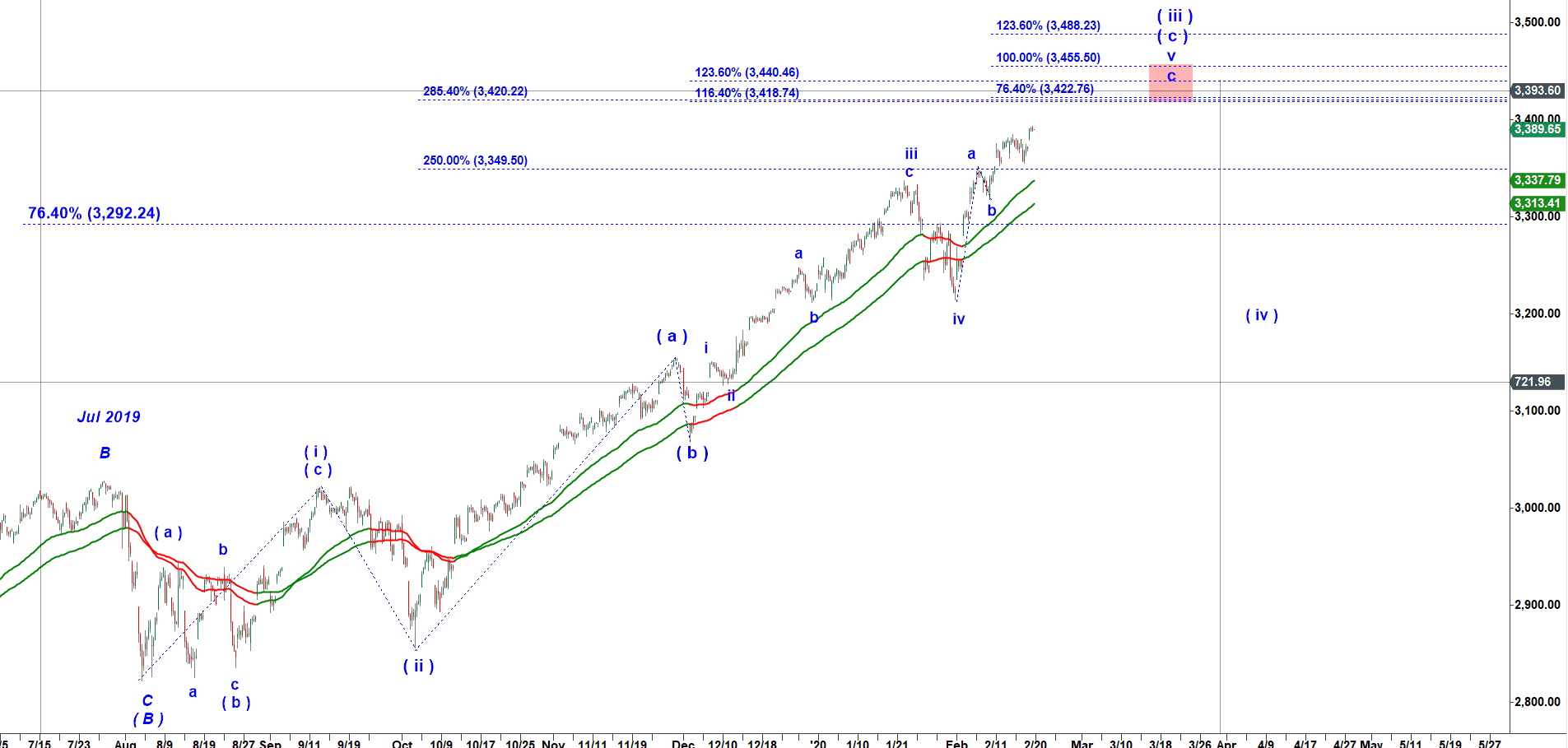 SPX - Daily chart updated at 3-35 PM on 2-19-2020