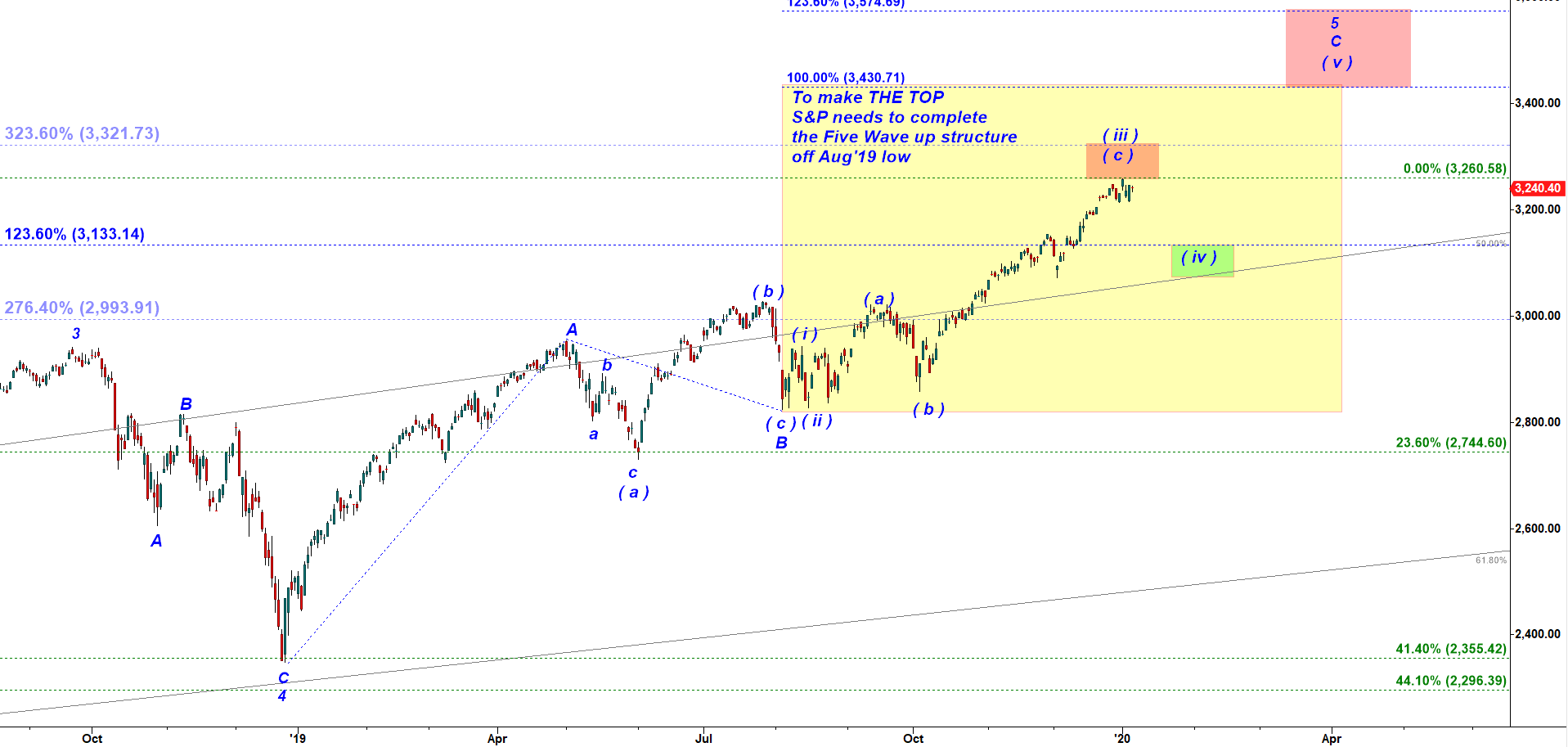 Nothing has changed in a bigger scheme of things. We keep waiting for this wave ( iii ) to top and start of a corrective wave ( iv ) down. SMH and GOOGL have posted this morning have the very same count.